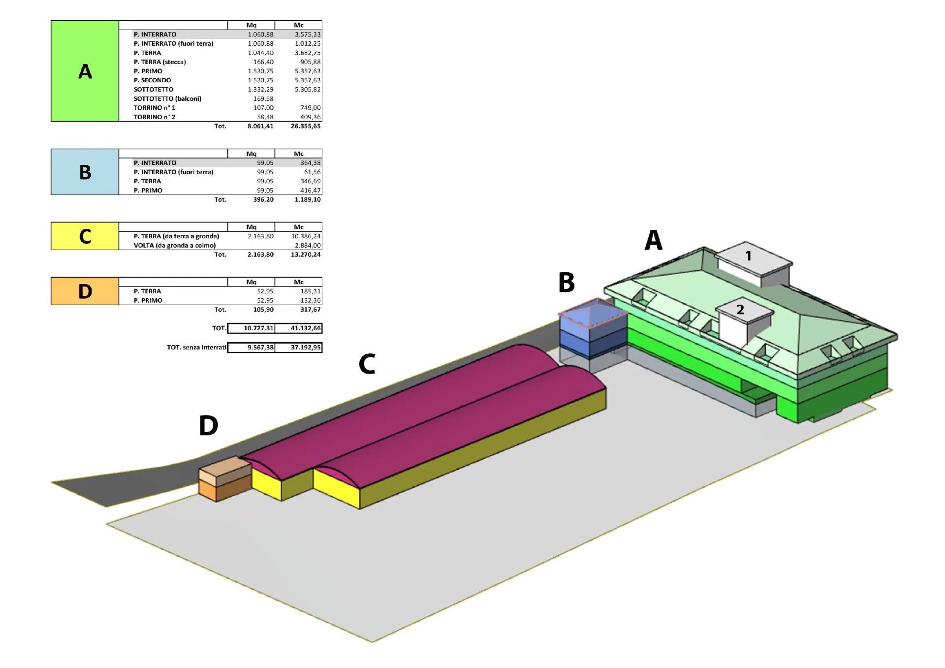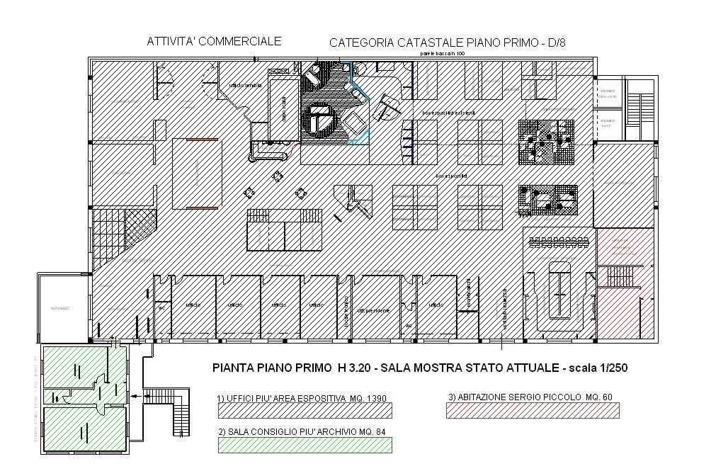 Il fabbricato principale, disposto su cinque livelli, consente di realizzare uffici direzionali, showroom, spazi espositivi o sale operative. L’immobile si presta inoltre ad una riconversione in clinica privata, centro diagnostico o residenza sanitaria assistenziale (RSA), data la grande superficie interna e la possibilità di organizzare spazi in modo funzionale e conforme alle esigenze sanitarie.